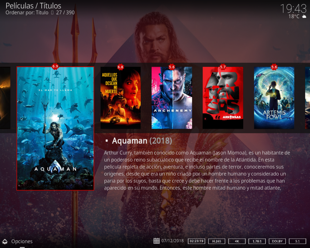 ¡Kodi está hecho para películas! Al admitir todos los formatos de vídeo principales, incluidos los medios en línea que se pueden transmitir, Kodi puede importar, explorar y reproducir su colección de películas con facilidad.
