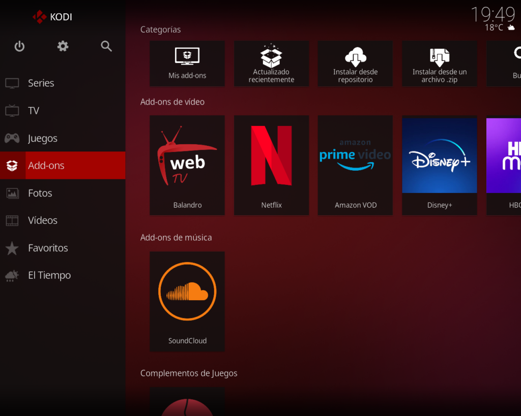 El verdadero poder de Kodi proviene de la amplia selección de complementos creados por la comunidad. Hay complementos para servicios web, aplicaciones y scripts populares.